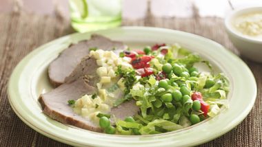 2En un sartén de 12 pulgadas de diámetro cocina las cebollas y el ajo durante 5 a 8 minutos a fuego medio alto. Pasa a un platón y revuelve con los ingredientes restantes. Revuelve hasta que todo se incorpore bien.