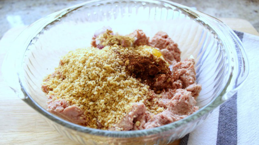 En un tazón mediano, combina la carne de pavo, el huevo, el ajo, la cebolla, el pan rallado, el chile en polvo y el comino. Mezcla los ingredientes, y dale forma a las albóndigas.