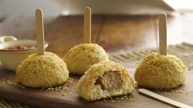 Forma bolitas del tamaño de una nuez e inserta un cubito de queso en el centro de cada una.