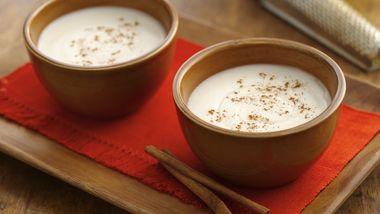 Colócalo en la fuente donde lo vas a servir y espolvorea canela en polvo por arriba a tu gusto. Este delicioso postre se puede comer tibio o frío.