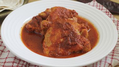 Transfiere el pollo a un recipiente grande resistente al calor.