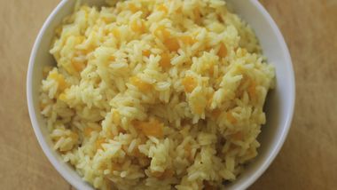Puedes usar arroz blanco de grano largo regular, en lugar del arroz integral. Reduce el agua a una taza y un tercio y reduce el tiempo de cocción a 15 o 20 minutos.