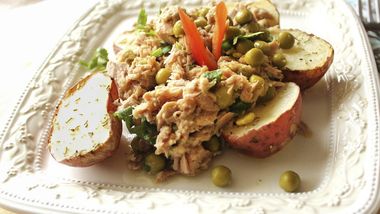 • A mi me gusta mucho tener latas de atún en mi despensa, pues esto me permite preparar un platillo en casa muy rápido y lleno de sabor. El atún es muy versátil; lo podemos combinar con muchos otros alimentos y sabores. De chica recuerdo que mi mamá nos preparaba mucho la ensalada de atún, y además cocinaba un tipo de atún caldoso con salsa de jitomate. El platillo que hoy te presento está inspirado en este platillo que mi mamá nos hacía, sólo que yo lo he modificado un poco para que quede más seco y pueda servirse con más cosas, además de que he agregado papas, zanahorias y chícharos para comer más verduras. Un poco de picante es requerido, pero en esta ocasión no estoy usando los chiles serranos que son tan comunes en la comida Mexicana, sino decidí darle un sabor diferente usando chile chipotle en polvo. ¡Espero que te guste!