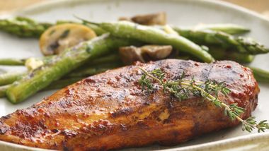 Corta las pechugas en ruedas, sal pimienta al gusto y coloca en la parrilla 5 minutos por cada lado, aproximadamente.