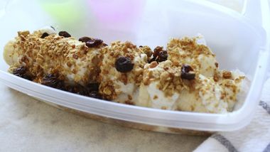 • Durante las vacaciones de verano me esmero por preparar postres y aperitivos deliciosos para mi familia. Con los pequeños en casa, hay más tiempo para divertirse con amigos y para organizar algunos días de juego. La última vez que los amigos de mi hijo estuvieron de visita preparé esta versión del clásico banana split y fue todo un éxito. Algunos ingredientes de la versión original fueron reemplazados por otros, como el helado por yogur y las chispas de chocolate por un poco de chía. A los pequeños les encantó. Es muy simple de hacer, y en tan sólo 5 minutos tendrás un delicioso aperitivo que le encantará a todos ¡Anímate a prepararlo!