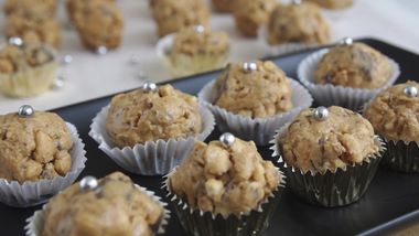 Barras de cereal con mantequilla de maní rellenas de chocolate