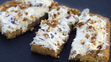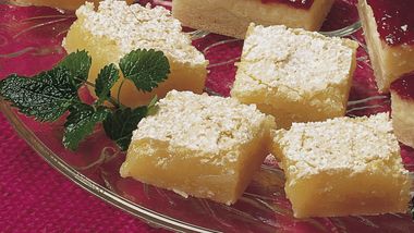 4Hornea aproximadamente 35 minutos o hasta que el centro esté firme. Enfría 30 minutos. Tapa y refrigera al menos 3 horas, hasta que enfríe. Para las barras, corta en 6 hileras por 6 hileras. Adorna con la cáscara de limón adicional. Guarda tapado en el refrigerador.