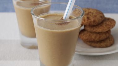 Para cada porción, coloca 2 cubos de café, dos tercios de taza de leche y 4 cubos de hielo en la licuadora. Tapa y licua a velocidad alta por 20 segundos o hasta que se mezclen bien y se deshagan un poco. Sirve en un vaso.