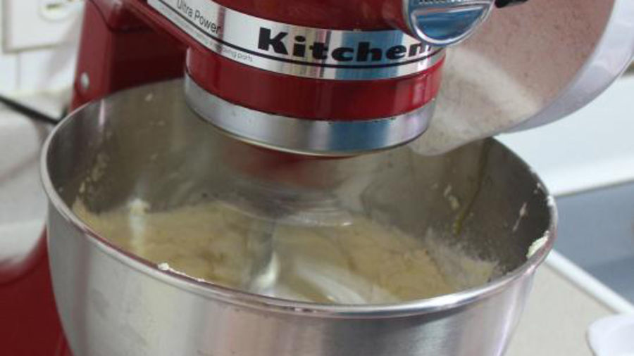 Para el bizcocho: Usando una batidora, bate a velocidad alta la mantequilla y el azúcar, hasta que se torne de un color amarillo pálido.