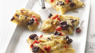 Acomoda estos ricos bocadillos en un platón bonito y adórnalos con perejil fresco u otra hierba aromática. Agrega un surtido de aceitunas marinadas de una tienda Delikatessen.