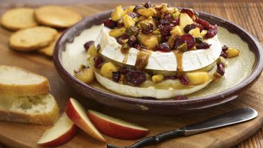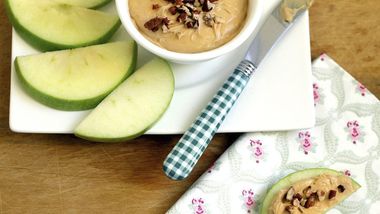 Corta la manzana en rebanadas finas. Corta las rebanadas en cuartos. Impregna los trozos con el jugo de limón para que no se oxiden. Corona cada triángulo con 1 pieza de manzana. Espolvorea sobre los trozos de manzana la media taza de queso restante. Hornea por unos 5 minutos o hasta que el queso se derrita. Sirve ligeramente caliente.