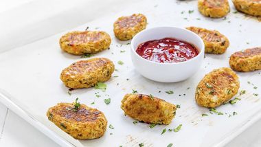 Usa polenta comercial para eliminar el paso de preparación de esta receta. Simplemente rebana la polenta, corta las rebanadas en cuartos y hornea como se indica.