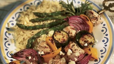 Si planeas utilizar palitos de madera, remójalos en agua primero para que no se quemen al colocarlos en la parrilla.