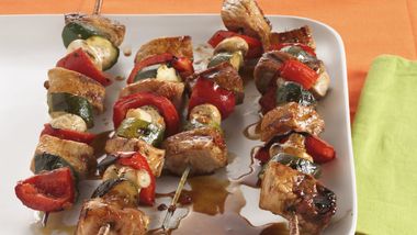 Prepara el horno en modo de asador. Asa los kabobs con la parte superior a entre 4 y 6 pulgadas del fuego por 2 minutos o hasta que las fruta esté caliente y el glaseado esté hirviendo. Sirve ligeramente calientes o fríos con el resto de la mezcla de conservas.