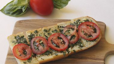 • 1 baguette pequeño, cortado en rodajas de 1/2 pulgada, tostadas