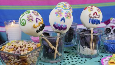 Crea las caritas de las calaveritas con el cereal y los dulces, usando el yogur como pegamento, los Fruit Gushers™ funcionan bien para los ojitos, los Fruit by the Foot™ son perfectos para crear las boquitas, y puedes crear cualquier figura con los Fruit Roll-Ups™, por ejemplo. Finalmente da los últimos toques con marcadores que sean comestibles.