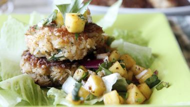 Salsa de Mango: En un recipiente pequeño, coloca los pedacitos de mango y machúcalos hasta que se forme un puré. Agrega miel, jugo de limón y salsa picante. Mezcla bien. Sirve en un bol y decora con pedazos de chile serrano.