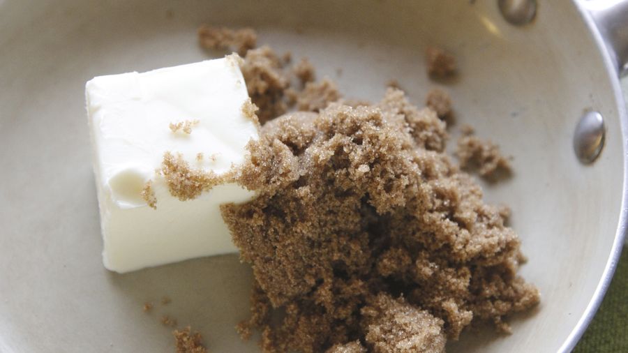 Mientras el camote se coce, coloca la mantequilla y el azúcar en una cacerola pequeña sobre fuego medio. Revuelve hasta que la mantequilla se haya derretido y el azúcar se haya disuelto.