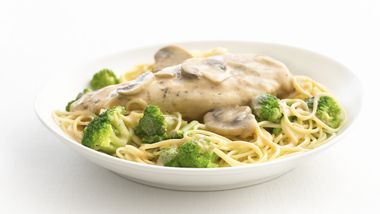 Para ahorrar tiempo, sustituye los champiñones frescos con 1 frasco (6 oz) de champiñones rebanados Green Giant®, escurridos. Omite la mantequilla y el paso de dorar.