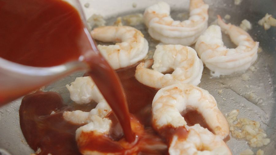 Agrega la salsa y cocina por un minuto más. Saca los camarones de la salsa.