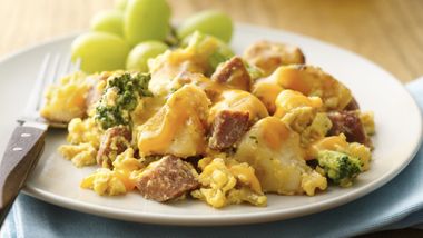 • Este Día del Padre, sorprende a papá con un suculento desayuno en la cama. Esta receta lleva chorizo ahumado con papas crocantes, cebolla, pimiento y tomates, listos para acompañar sus huevos matutinos favoritos.