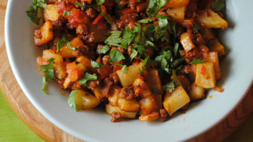 Salpimienta, agrega las papas y fríe hasta que se doren, por unos 8 minutos.
