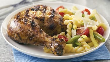 4Heat oven to 375°F. Using kitchen twine, tie the chicken legs together.