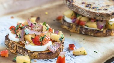 Descarta el corazón con las semillas y corta el resto de la fruta en cubos.