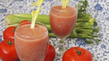 • Sirve a los tuyos esta rica crema de tomates decorada con pesto de cilantro, lista en 30 minutos.