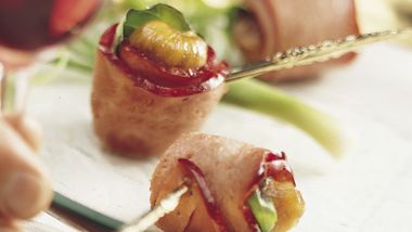 • La palabra italiana crostini, que significa “pequeñas tostadas”, describe también sabrosos canapés como estos agridulces bocadillos.