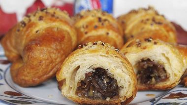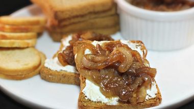 Cuadritos con Cebolla Caramelizada y Aceitunas