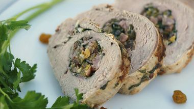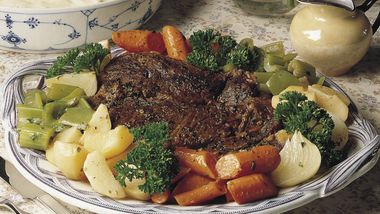 To cook in a pressure cooker: In a pressure cooker, place all meat ingredients. Add water to 1 inch from the bottom. Close pressure cooker cover securely. Place pressure regulator on vent pipe. Cook at 15 pounds pressure, with regulator rocking slowly, for 45 minutes. Let pressure drop of its own accord. Meat thermometer should read 160°F. Cool meat about 1 hour; slice. Serve cold.