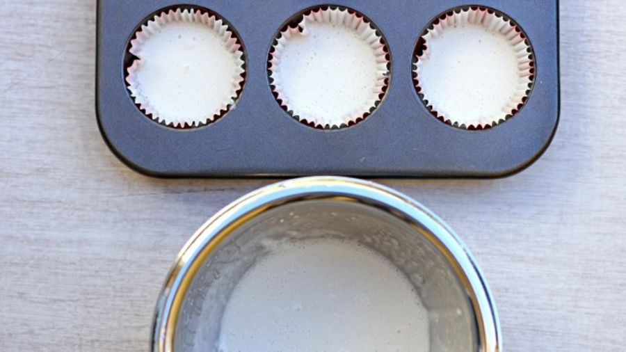 Deposita la mezcla en un molde para cupcakes al que se le han acomodado los correspondientes papelitos antiadherentes.