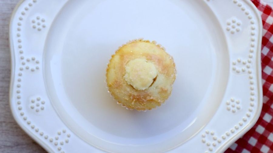 Deja enfriar los cupcakes y luego corta una pequeña tapa en el medio.