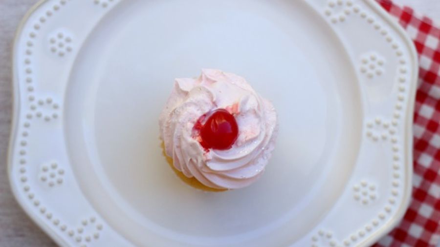 Puedes usar cerezas o fresas para rellenar los cupcakes.
