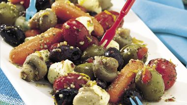 Añade variedad a tu platón de verduras. Además de las tiras comunes de zanahoria y apio, puedes añadir chícharos japoneses en vaina, puntas de espárragos, tiras de jícama y tiras de pimiento rojo.