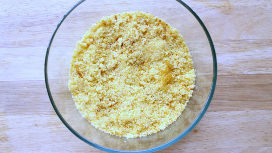 En un tazón pequeño bate la crema agria, cilantro, jugo de limón y la ralladura. En otro recipiente mezcla el maíz y el pimiento verde.
