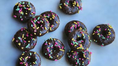 Puedes usar cualquier tipo de mezcla de cake para hacer estas donas. Cúbrelas en chocolate blanco y decóralas con nueces picadas, coco rallado o frutas secas.