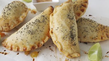 Las empanaditas crudas se pueden congelar hasta por dos meses. Ponlas en charolas de horno y congélalas hasta que estén firmes. Transfiérelas a una bolsa de plástico hermética. Hornea las empanaditas congeladas a 400°F de 12 a 17 minutos.