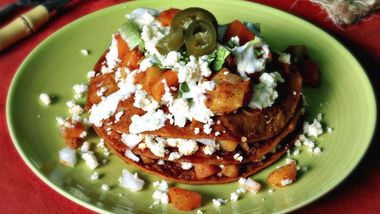Acomoda 2 o 3 enchiladas en cada plato. Báñalas con 2 o 3 cucharadas de salsa para enchiladas. Adorna con más queso fresco y cilantro.