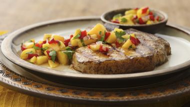 Hornea sin cubrir de 30 a 40 minutos o hasta que la carne adquiera un ligero tono rosado en el centro y el termómetro de carnes, insertado en el centro, indique 160°F. Deja enfriar el lomo y rebánalo.