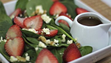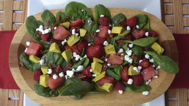 • Hay ciertos sabores que jamás pensarías que queden bien combinados. Esta ensalada es un ejemplo perfecto de una agradable sorpresa de sabores totalmente inesperada. La combinación de sandía refrescante con arrúgala, queso feta y vinagreta de frambuesa son el balance perfecto para una jugosa y crocante ensalada. Es muy fácil de preparar y solo lleva pocos ingredientes, así que es una ensalada ideal para picnics, parrilladas y fiestas improvisadas. Para tu próxima reunión de verano, sirve esta ensalada y verás cómo tus invitados repetirán porciones.