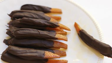 Con la ayuda de un cucharón pequeño, llena las cáscaras con la mezcla, rocía el chocolate derretido sobre la mezcla, dándole la forma deseada con una cuchara pequeña. Enfría las cáscaras rellenas con la mezcla de gelatina de naranja en el refrigerador por 30 minutos para que espese y agarre la consistencia deseada.