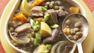 • Delight family members by serving them a stew packed with vegetables and whole chicken - a hearty slow-cooked dinner.