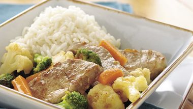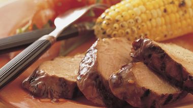 1Precalienta el horno a 350°F. En un sartén de 12 pulgadas con non-stick, calienta el aceite a fuego medio alto. Agrega el puerco; cocina 4 minutos por lado o hasta que este doradito (sellado). Retíralo de la lumbre y colócalo en un molde para horno de vidrio de 13 x 9 pulgadas. Agrega ¼ taza de caldo de puerco. Cúbrelo con papel aluminio. Hornea de 20 a 25 minutos o hasta que la temperatura interna del filete lea 160°F. Retira del horno; cubre para mantenerlo caliente.