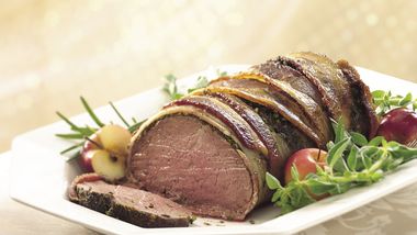 1Precalienta el horno a 350°F. En un sartén de 12 pulgadas con non-stick, calienta el aceite a fuego medio alto. Agrega el puerco; cocina 4 minutos por lado o hasta que este doradito (sellado). Retíralo de la lumbre y colócalo en un molde para horno de vidrio de 13 x 9 pulgadas. Agrega ¼ taza de caldo de puerco. Cúbrelo con papel aluminio. Hornea de 20 a 25 minutos o hasta que la temperatura interna del filete lea 160°F. Retira del horno; cubre para mantenerlo caliente.