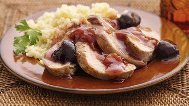 Coloca la sartén en el horno y asa el puerco por 45 minutos o hasta que el termómetro indique 140º F en el centro de la carne.