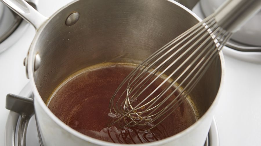 Para preparar el caramelo: En una olla mediana a fuego medio agrega la azúcar. Mezcla constantemente hasta que la azúcar se disuelva y se torne color ámbar.