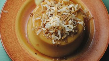 Una vez que los flanes se enfríen, sepáralos de los moldes con un cuchillo, volteándolos sobre un plato.