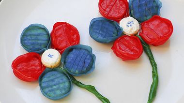 Puedes usar el Fruit Roll-Up® amarillo en vez de rojo para tu flor o combinar flores de navidad amarillas y rojas.